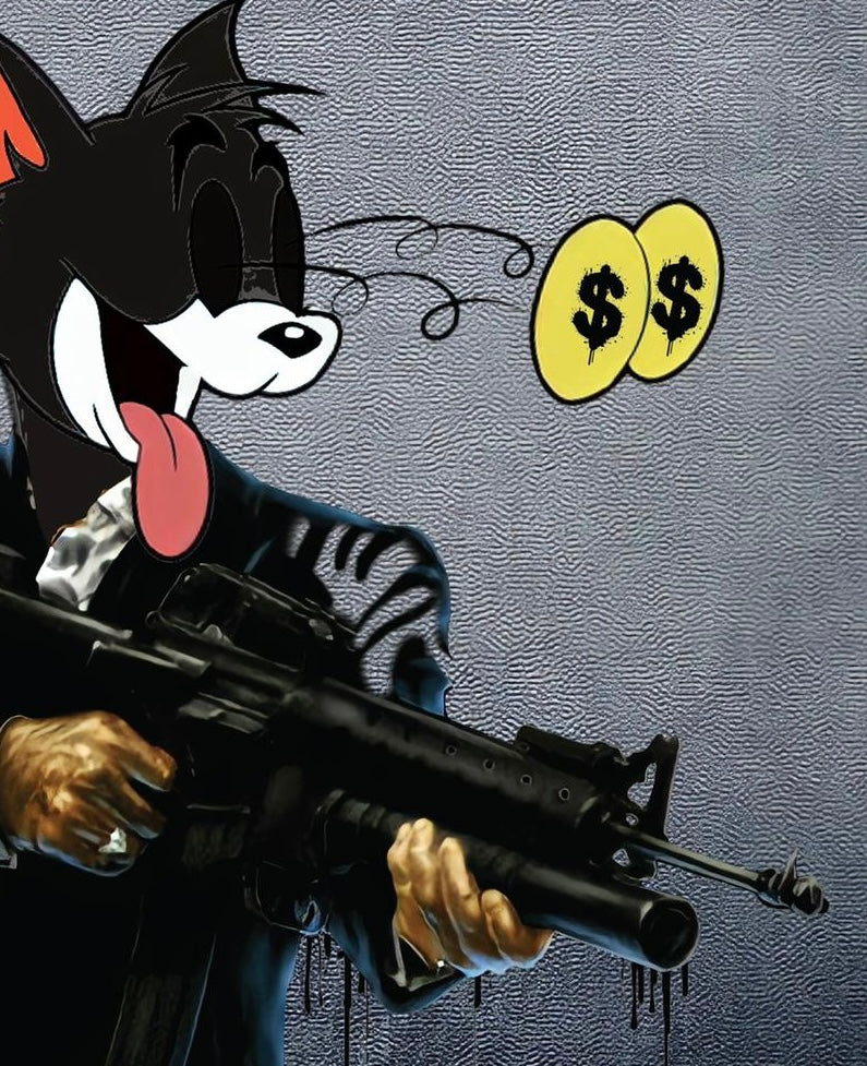 Tom isn’t just a cartoon character here — he’s a symbol of greed, power, and the obsession with chasing money at any cost. With a playful yet dark twist, Tom Face blends childhood nostalgia with a raw commentary on modern ambition and materialism. The result is a bold artwork that sparks both humor and reflection, making it stand out as more than just a piece of art — it’s a statement.